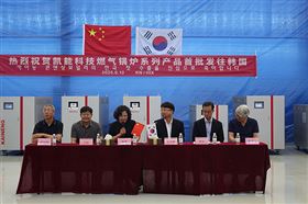 2025年6月12日,来自中韩两国的嘉宾齐聚一堂,在青岛凯能科技冷凝燃气锅炉生产车间装货区隆重举行首批冷凝锅炉韩国发货仪式。伴随着热烈的掌声和礼花绽放,在凯能科技董事长郭艳女士、总经理王波先生,韩国公司社长金先生等中韩双方代表的共同见证下,首批全预混低氮冷凝燃气供暖锅炉正式启航韩国市场,开启中韩暖通行业合作的新篇章。